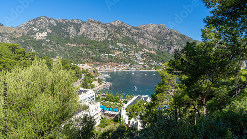 © Olga Bryukhova, Fototapeta premium Village Turunс, neighbourhood of municipality and district Marmaris, Mugla Province, Turkey. Holiday resort on Mediterranean Sea coast. Taurus Mountains
