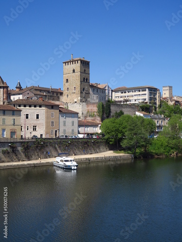 © Ourson+, Fototapeta premium Ville de Cahors dans le Lot avec fleuve et châteaux
