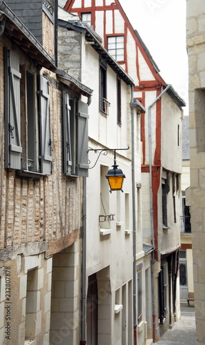 Fototapeta premium Ville de Chinon, ruelle et vieilles façades du centre historique, pans de...