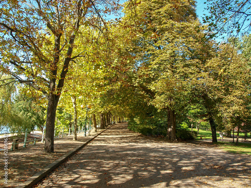 © Marc, Naklejka premium Ville de Vichy dans l'Allier. Chemin thermal sous les platanes le long des berges de l'Allier et le Parc Napoléon III