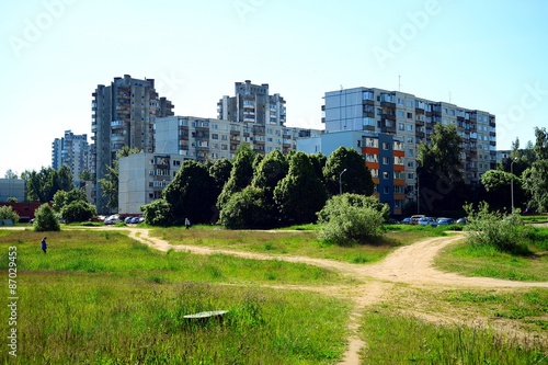 © bokstaz, Obraz premium Vilnius city Seskine district view on spring time