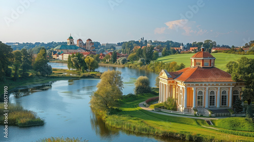 Fototapeta premium Vilnius, Lithuania city skyline created with Generative AI technology