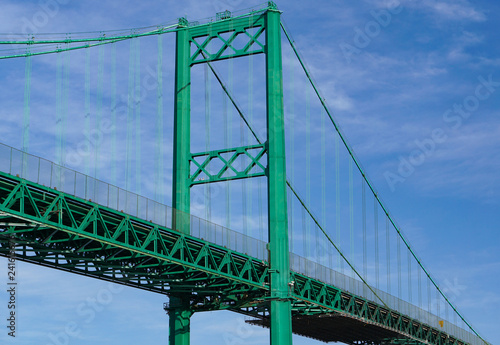 © Brad Nixon, Fototapeta premium Vincent Thomas Suspension Bridge west tower in San Pedro California across the Port of Los Angeles, showing the cable system and roadway, 1500 feet long