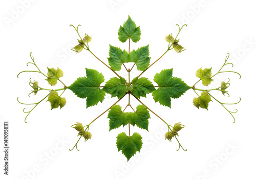 Fototapeta premium Vine leaves symmetrical design isolated on transparent background