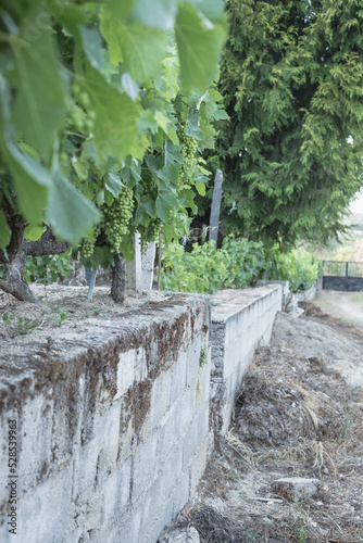 © AAlves, Fototapeta premium Vine with growing grapes and later ripening.