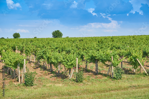 Obraz premium Vineyard and blue sky with clouds