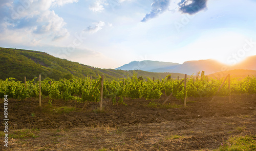© Yuri Bizgaimer, Obraz premium vineyard at sunrise