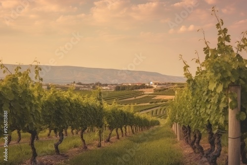 Fototapeta premium Vineyard during sunset landscape outdoors nature.