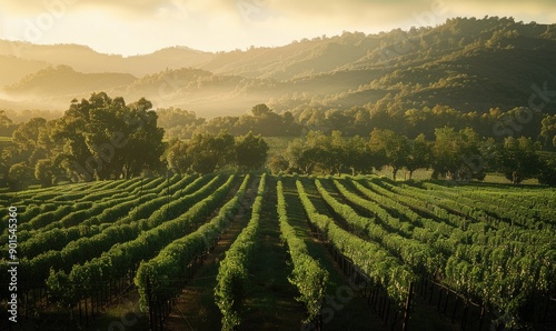 © TheoTheWizard, Fototapeta premium Vineyard in late afternoon light with long shadows
