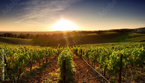 © Halee, Fototapeta premium vineyard in the morning grape field at sunset