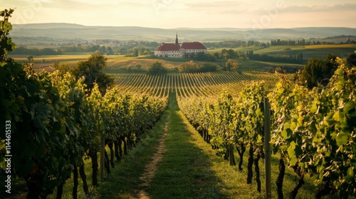 © Yeivaz, Fototapeta premium Vineyard Landscape at Golden Hour