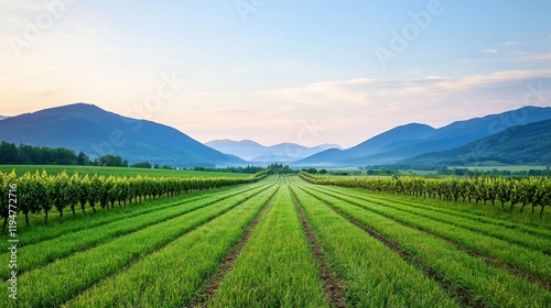 Fototapeta premium Vineyard landscape at sunrise