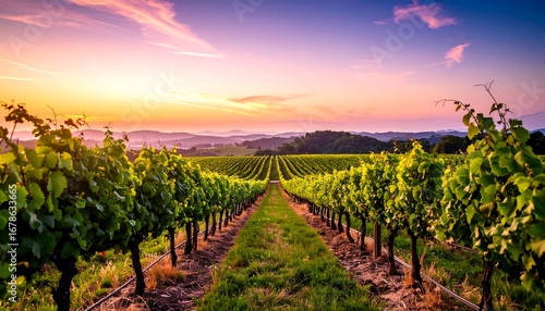 © Aldi, Naklejka premium Vineyard landscape at sunrise