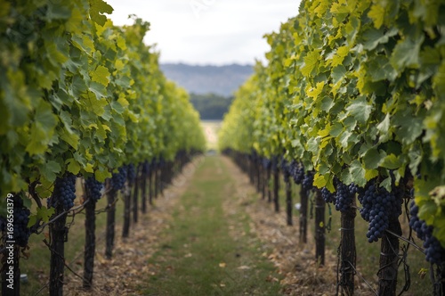 © Emin, Obraz premium Vineyard landscape featuring grapes in a seasonal natural setting