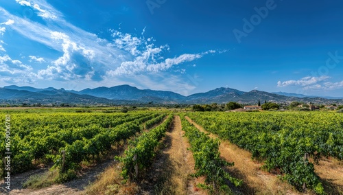 © Fadhel, Naklejka premium Vineyard landscape under a vibrant sky (1)