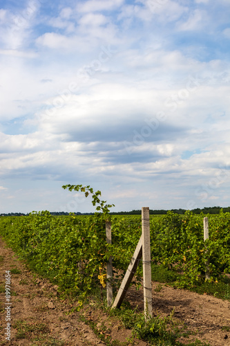 Fototapeta premium Vineyard on a background of blue sky with clouds