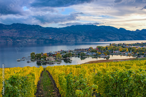 Naklejka premium Vineyard Overlooking Okanagan Lake Kelowna BC Canada