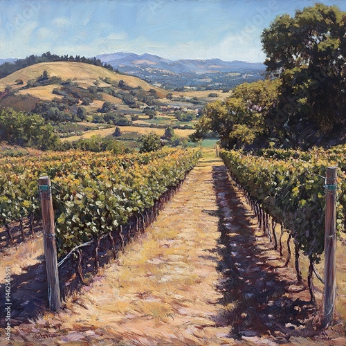 © Quantum, Obraz premium Vineyard Path Under Sunny Sky