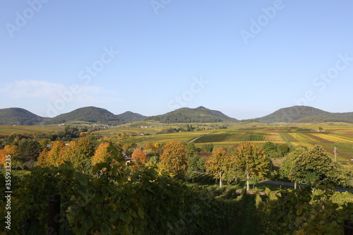 Naklejka premium Vineyard rhine valley palatine nice weather bule sky beautiful colors