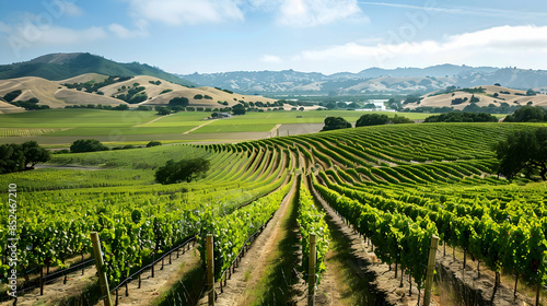 Fototapeta premium Vineyard Rows in Rolling Hills Landscape Photo