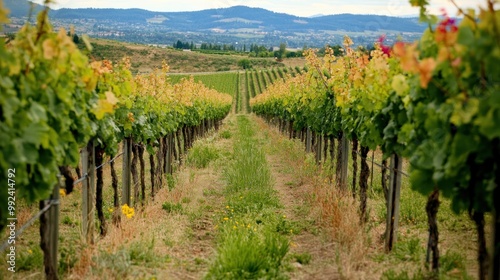 © luck, Obraz premium Vineyard Rows in Rural Setting