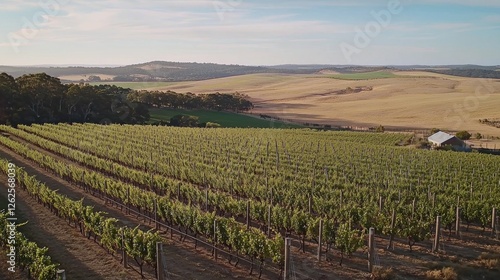 © zidna, Fototapeta premium Vineyard Rows, Scenic Australian Landscape, Sunrise, Farmland