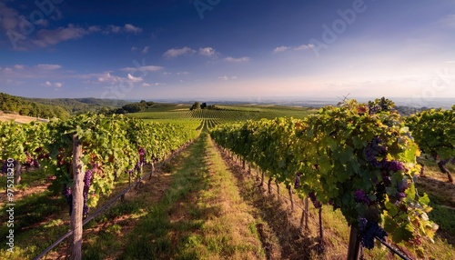 © swan, Fototapeta premium Vineyard rows stretch out