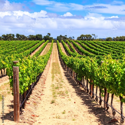 © Mesni, Fototapeta premium Vineyard rows under a vibrant sky (1)