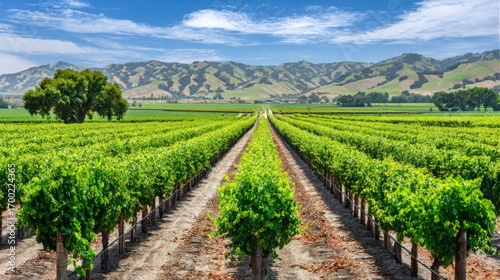Fototapeta premium vineyard. Serene vineyard landscape with orderly grapevine rows under natural...