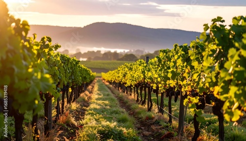 © Khairarani, Obraz premium Vineyard Sunrise Landscape
