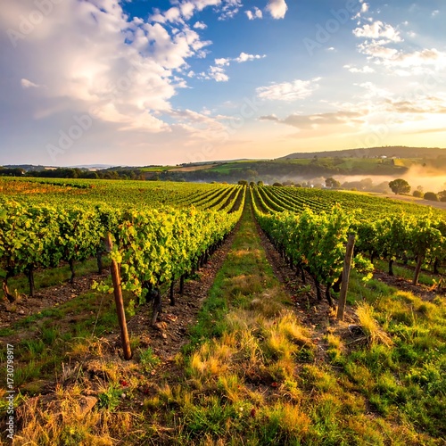 © barber, Fototapeta premium Vineyard sunrise landscape