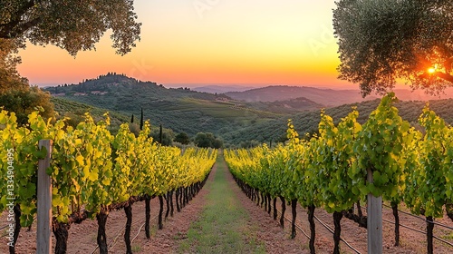 © Alesha, Naklejka premium Vineyard Sunset Landscape