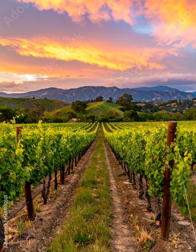 Naklejka premium Vineyard sunset landscape