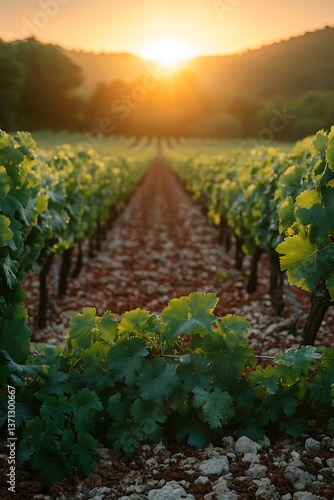 © Anugrah, Fototapeta premium Vineyard Sunset Path, Countryside