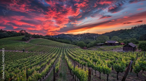 © Dede, Naklejka premium Vineyard Sunset with Dramatic Sky
