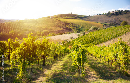 Naklejka premium Vineyard with grapes in sunshine, agriculture and farming