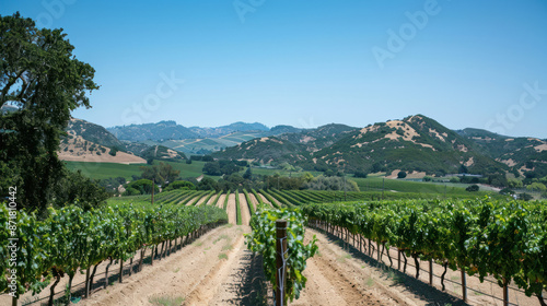 Fototapeta premium Vineyard with grapevines under a clear sky