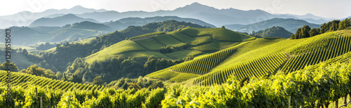 © Maoping, Fototapeta premium Vineyards among majestic green hills and mountains, panoramic view, isolated on a white background
