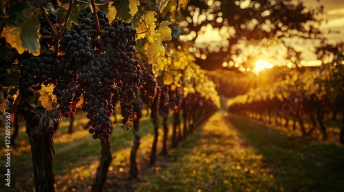 Naklejka premium Vineyards at sunset