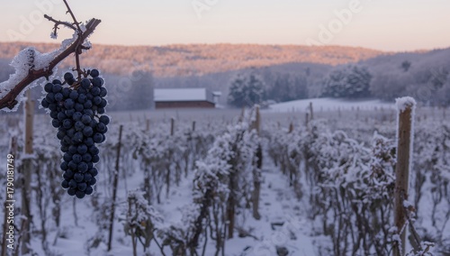 © The 2R Artificiality, Naklejka premium Vineyards blanketed in snow, seasonal change