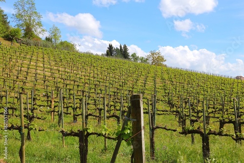 © Tupungato, Naklejka premium Vineyards in Tuscany - rural Italy. Agricultural countryside area in the province of Siena.