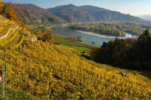 Naklejka premium Vineyards near Weissenkirchen on a sunny day in autumn