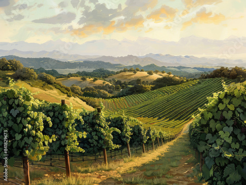© Yana Art and Design, Fototapeta premium Vineyards on Rolling Hills, Generative AI Illustration