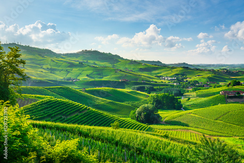 Fototapeta premium Vineyards on the rolling hills near the town of Barolo in the Langhe area, Piedmont, Italy