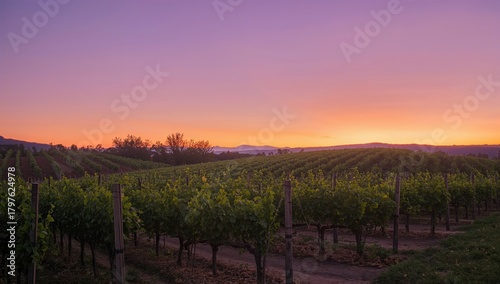 Fototapeta premium Vineyards Under a Faded Sunset Horizon, Preservation