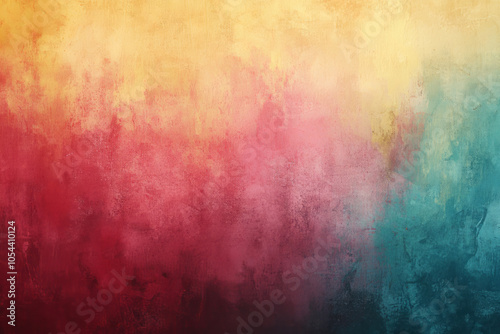 Fototapeta premium vintage abstract grunge wall texture with yellow red teal gradient background