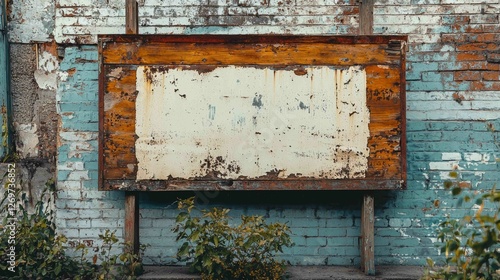 © Kitta Studio, Naklejka premium Vintage Advertising Sign with Distressed Surface and Urban Background