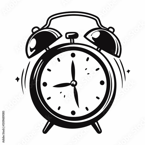 © inspiring , Obraz premium Vintage Alarm Clock Illustration Black and White Retro Clock Icon Art