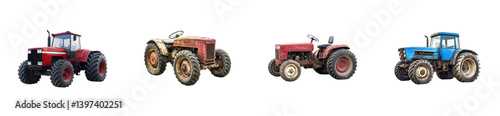 © Mr. Stocker, Obraz premium Vintage and modern tractors showcase: red and blue agriculture machines, cut out - stock png