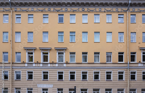 © orininskaya, Fototapeta premium Vintage architecture classical facade in Empire style with military garlands and laurel wreaths front view